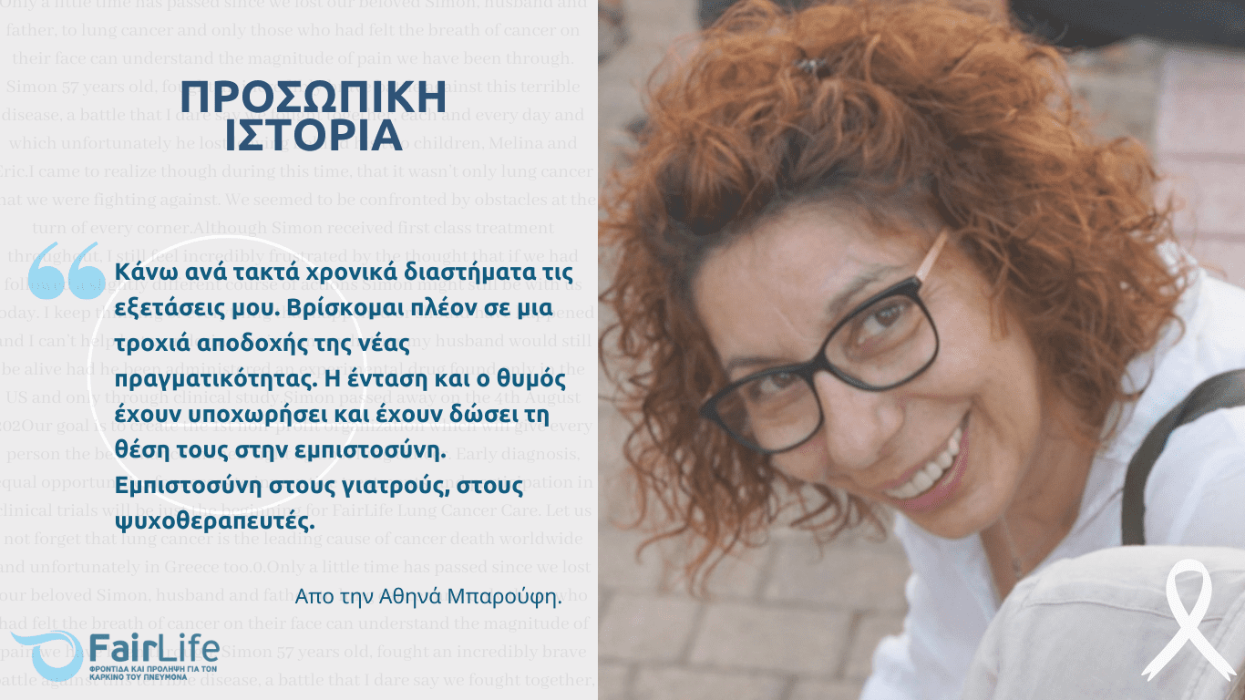 Διαβάστε περισσότεραΑπο την Αθηνά Μπαρούφη,Ασθενή, 53 ετών Εντελώς τυχαία, τον Οκτώβριο του 2019, βρέθηκα αντιμέτωπη με τον καρκίνο του πνεύμονα. Ένας οξύς πόνος στο στομάχι…